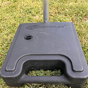Our plastic base is a more affordable mounting option. A lightweight water or sand-filled mount, it’s ideal for venues that don’t have heavier winds.