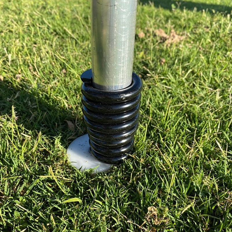 Our Sportaflex Enduro & Grand Slam Fencing poles are made of high-tempered lightweight aluminum that will not break under ordinary use. Absent abuse, they will last forever. Also, our past experience in building heavy-duty ten-foot aluminum frames taught us that safety is an important consideration for sports venues. In an effort to reduce the risk of injury, we designed a spring-based system (pat. pending) that helps reduce the risk of injury while also protecting the aluminum poles in the event of a heavy impact. Rather than replacing Enduro & Grand Slam Fencing poles upon a direct impact, our spring-poles bend with the action, then spring back to their upright position.